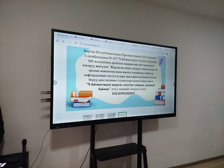1b3a7156-69c5-4ddb-a166-e40bd15365a7 Навигация по записям Предыдущая: К.Ш. ТОКТОМАМАТОВ АТЫНДАГЫ ЭЛ АРАЛЫК УНИВЕРСИТЕТТИН ЧЫҢГЫЗ АЙТМАТОВДУН ЧЫГАРМАЧЫЛЫГЫНА АРНАЛГАН ИШ-ЧАРАЛАРЫНАН КАБАРЛАР Добавить комментарий Отменить ответВаш адрес email не будет опубликован. Обязательные поля помечены *Комментарий * Имя * Email * Сайт Сохранить моё имя, email и адрес сайта в этом браузере для последующих моих комментариев. Δ
