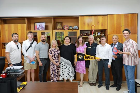 2 июня этого года Международный университет имени К.Ш. Токтомаматова (МНУ, г. Жалал-Абад) посетила делегация из профессорско-преподавательского состава и магистрантов Университета Миссури г. Колумбия штата Миссури США. Делегацию возглавила проректор по международным связям названного университета, PhD, профессор Мэри Стегмайер. Партнеров из Университета Миссури тепло встретила ректор МНУ д.э.н., профессор Айжамал Кантороевна Кантороева, побеседовали на тему активизации взаимовыгодного сотрудничества, поделились планами на будущее. В ходе этого визита американские коллеги и магистранты ознакомились с деятельностью МНУ, а также провели гостевую лекцию на тему сотрудничества США и Кыргызстана, рассказали о научно-образовательной деятельности своего университета, наиболее подробно о магистратуре и аспирантуре. Напомним, что Университет Миссури и МНУ в 2021 году подписали двухстороннее соглашение о сотрудничестве. С того периода американские партнеры активно сотрудничают с МНУ. Названная встреча партнеров была традиционно интересной и плодотворной.