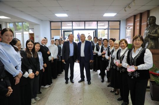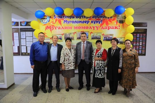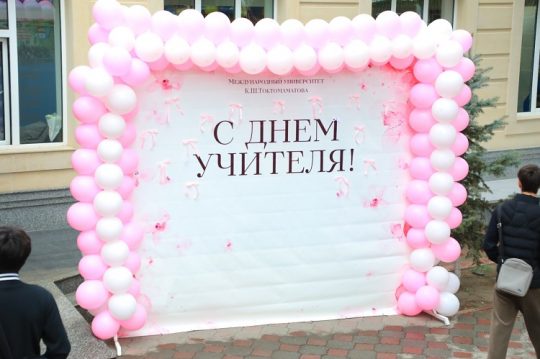 3 октября к.Ш. В Международном университете имени К.Ш. Токтомаматова (г. Манас, МНУ) кафедра педагогики и Комитет по делам молодежи совместно с активом студентов в преддверии Всемирного Дня учителя — 5 октября торжественно поздравили профессорско-преподавательский состав и сотрудников вуза. Желаем профессорско-преподавательскому составу, сотрудникам нашего университета успехов в педагогической, научной, воспитательной работе! Вместе с этим, мы искренне поздравляем всех наших коллег, работающих в сфере образования с профессиональным праздником, желаем больших успехов! С профессиональным праздником!