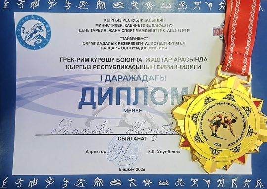 Үстүбүздөгү жылдын 10-11-февралында Бишкек шаарында Кыргыз Республикасынын грек-рим күрөшү боюнча жаштар арасында биринчилик өткөрүлүп, 20 жашка чейинкилер арасында К.Ш. Токтомаматов атындагы Эл аралык университеттин “Юриспруденция” багыты боюнча 1-курсунун студенти Раатбек Паязбеков 82 кг салмагында биринчи орунду ээлеп, алтын медаль менен сыйланды! Студентибиз Раатбекти аталган спорттук ийгилиги менен чың жүрөктөн куттуктайбыз!