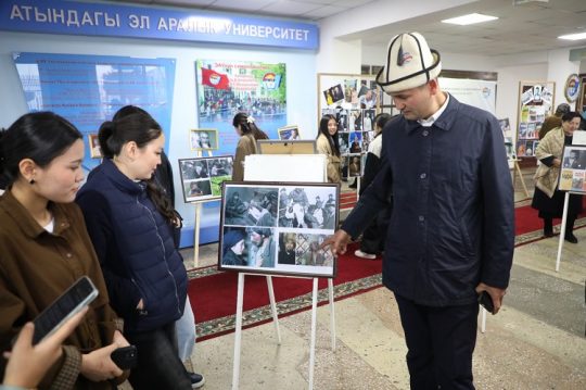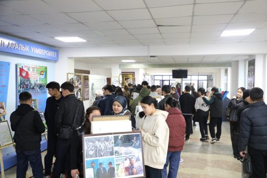 Үстүбүздөгү жылдын 26-февралында К.Ш. Токтомаматов атындагы Эл аралык университеттин башкы имаратынын фойесинде (ЭАУ, Манас шаары) Чыңгыз Айтматов атындагы эл аралык Ысык-Көл форумунун маарекелик иш-чараларынын алкагында улуу гуманист, дүйнөгө белгилүү кыргыз жазуучусу Чыңгыз Айтматовдун чыгармачылыгы боюнча сүрөттөр көргөзмөсү болуп өттү. Аталган көргөзмө ЭАУнун Туран Язган атындагы Эл аралык Кыргыз-Түрк институтунун эл аралык мамилелер жана жалпы теориялык сабактар кафедрасы тарабынан уюштурулган (кафедра башчысы фил.и.к., проф. Элмира Хурибаева, көргөзмөнүн алып баруучусу доц. Талгарбек Касымов). ЭАУнун илимий иштери боюнча проректору, п.и.к., проф. Төлөгөн Омошевдин айтуусунда көргөзмө абдан кызыктуу, тематикалык жактан мазмундуу болуп, университеттин жана анын колледждеринин студенттеринин активдүү кызыгуусун жаратты.