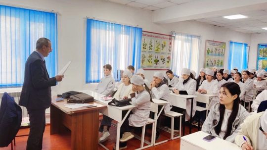 Дарыгер Мурсалиев Акрам лекцияда кургак учуктун дүйнөлүк деңгээлде жана өлкөбүздөгү абалына токтолуп, оорунун жайылуу жолдору жана андан сактануунун эрежелерин баяндап берди. Лекциянын соңунда студенттер дарыгерге кызыктуу жана пайдалуу маалыматтар үчүн ыраазычылык билдиришти. Мындай иш-чаралар студенттердин медициналык сабаттуулугун арттырып, өз ден соолугуна кам көрүүгө жоопкерчиликтүү мамиле жасоого үйрөтөт.