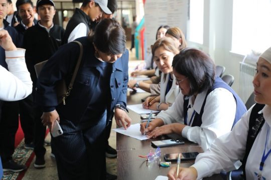 24 апреля сего года в Международном университете им. К.Ш. Токтомаматова (г. Манас, МНУ) в рамках профориентационной работы для учеников выпускных 9-11 классов средних школ провели День открытых дверей. В этот день университет посетили ученики выпускных классов средних школ г. Манас, Сузакского, Базар-Коргонского, Ноокенского и Узгенского районов. В ходе названного мероприятия гости ознакомились с учебными корпусами университета и его колледжей, а также с кабинетами, библиотеками, техническими средствами обучения, общежитием и спортивным комплексом. Были организованы интересные игры, показаны концертные номера. Потенциальные абитуриенты получили полный пакет информации по вопросам обучения в МНУ. В целом День открытых дверей в МНУ традиционно прошел интересно. Как сказала ректор МНУ, д.э.н., проф. Айжамал Канторева, правильная профориентация очень важна и нужна для молодежи. Выражаем благодарность за активное участие в выставке вуза предприятиям ОсОО “Багери” и ЗАО “Келечек”, производящие кондитерские изделия и прохладительные напитки.