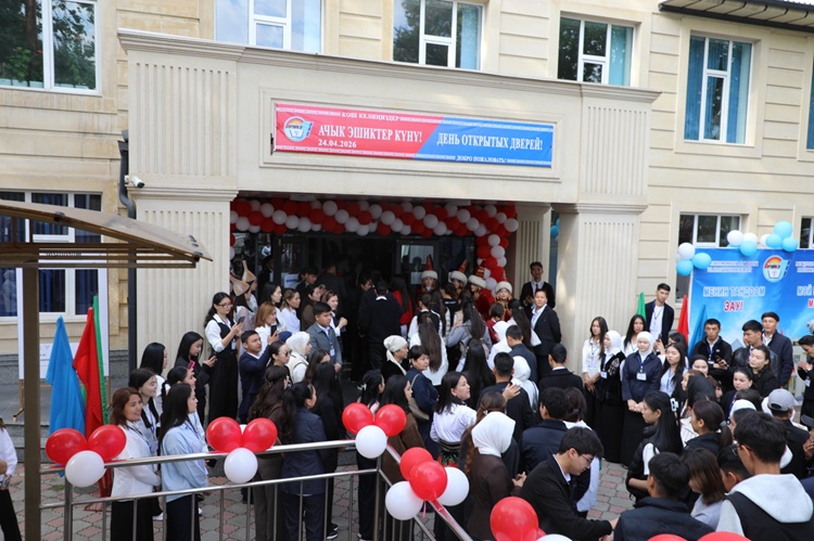 Үстүбүздөгү жылдын 24-апрель күнү К.Ш. Токтомаматов атындагы Эл аралык университетте (Манас ш., ЭАУ) мектептердин 9-11-класстарынын бүтүрүүчүлөрү үчүн кесиптик багыт берүү иштеринин алкагында Ачык эшиктер күнү өткөрүлдү. Айтылган иш-чаранын жүрүшүндө университетке Манас шаарынын, Сузак, Базар-Коргон, Ноокен жана Өзгөн райондорунун орто мектептеринин бүтүрүүчү класстарынын окуучулары келип кетишти. Келген меймандарга университеттин жана анын колледждеринин бардык окуу имараттары, кабинеттери, китепканалары, окутуунун техникалык каражаттары, жатаканасы, спорттук комплекси көрсөтүлүп, окуу маселелери боюнча бир катар маалыматтар, түшүндүрмөлөр берилди, о.э. кызыктуу оюндар уюштурулуп, концерттик номерлер көрсөтүлдү. ЭАУнун Ачык эшиктер күнү жылдагыдай кызыктуу өттү. ЭАУнун ректору, э.и.д., проф. Айжамал Кантөрөева айткандай, жаштарга туура кесиптик багыт берүү – абдан маанилүү иштерден. Иш-чаранын көргөзмөсүнө активдүү катышкан ЖЧК “Багери” жана ЖАК “Келечек” аттуу ширин азыктарды жана суусундуктарды чыгарган ишканаларына терең ыраазычылык билдиребиз.